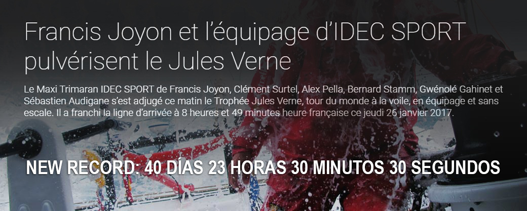 • Trofeo Julio Verne, intento de récord de vuelta al mundo a vela, circunnavegación en 47 días, 14 horas y 47 minutos, a bordo del “IDEC Sport”